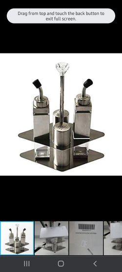Kiseki Stainless Steel Square Oil Sauce Bottle and Salt & Pepper Shaker with Stand