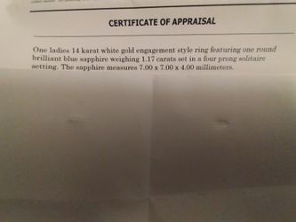 1.17 Carrot Saffire Engagement Rings $3,000Cleveland, OH