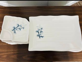 Blue bamboo melamine plates and dumpling plates with sauce compartment$10Chandler, AZ