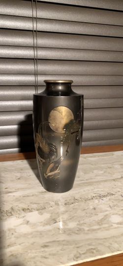 Metal Etched Vase With Several Inlaid Types Of A Moonlit Design$22Winfield, IL