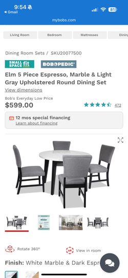 Elm 5 Piece Espresso, Marble & Light Gray Upholstered Round Dining Set$420Glendale, CA