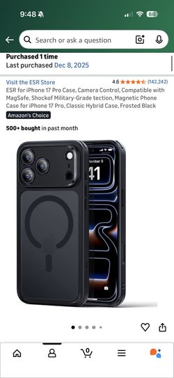 ESR for iPhone 17 Pro Case, Camera Control, Compatible with MagSafe, Shockof Military-Grade tection, Magnetic Phone Case for iPhone 17 Pro, Classic Hy$15Los Angeles, CA