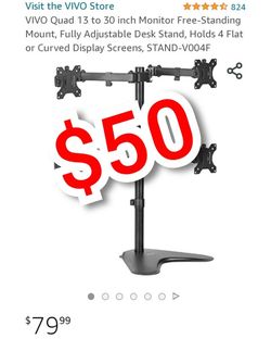 VIVO Quad 13 to 30 inch Monitor Free-Standing Mount, Fully Adjustable Desk Stand, Holds 4 Flat or Curved Display Screens, STAND-V004F$50Banning, CA