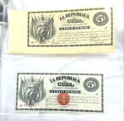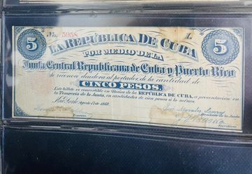 Billetes Cubano De 5 Pesos 1869$350Miami, FL