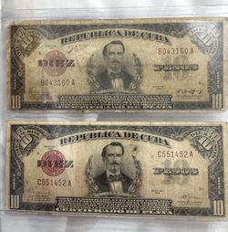 Certificados De Platacubanos 10 Pesos 1943 y 1945 $200Miami, FL