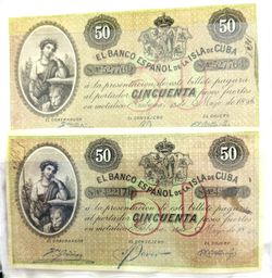 Billetes 50 Pesos Cuba 1896$250Miami, FL