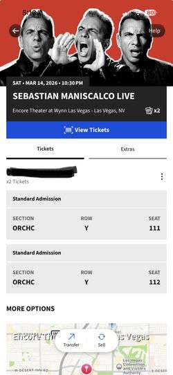 2 Tickets Sebastian Maniscalco 10:30pm Tonight $280Las Vegas, NV