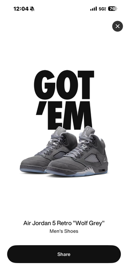 Jordan 5 retro wolf grey 2026 Size 13$330Manvel, TX