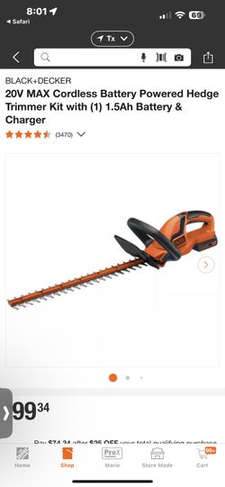 20V MAX Cordless Battery Powered Hedge Trimmer Kit with (1) 1.5Ah Battery & Charger$20Missouri City, TX