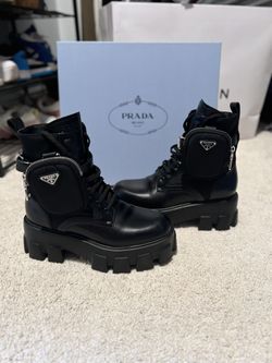 Black PRADA Leather Zip Combat Booties Size 37 Like New$1,300Pompano Beach, FL