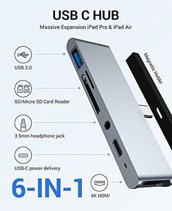 iPad Pro 2020 6-in-1 USB C Adapter, USB3.0, SD/TF Card Reader, 3.5mm Headphone Jack, PD, 4K HDMI$25Waukegan, IL
