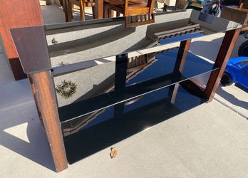 Glass TV Stand- Black/ brown wood$65Chandler, AZ