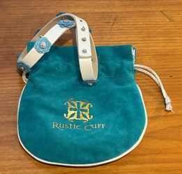 Rustic Cuff White Leather Wrap Cuff Bracelet with Blue Flower and Silver Colored Accents plus Velvet Bag$10Irvine, CA