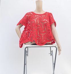 Summer Blouse,Red Blouse,Cotton Blouse,Handmade Crochet Blouse $95East Quogue, NY