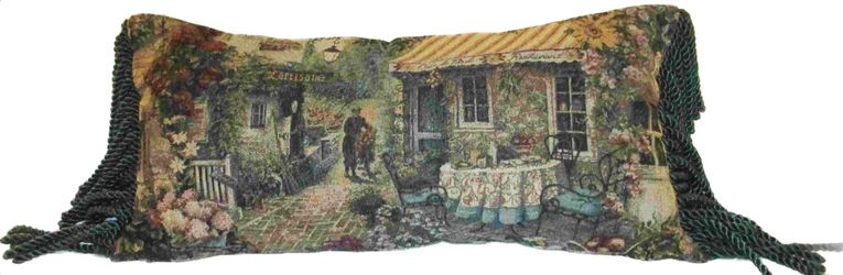 Turn-of-Century French Village Tapestry Pillow, Velvet Back, Fringe, vintage pillow$30Tigard, OR