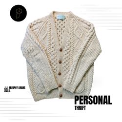 J.J. Murphy Arans Wool Cardigan Sweater Cream Size Men’s Large$59Shawnee, KS