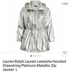 Lauren Ralph Lauren Laneisha Hooded Drawstring Platinum Metallic Zip Jacket L $50Pembroke Pines, FL