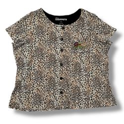 MUPPETS Leopard Print Button Down Embroidered Kermit Top Lounge Sleep Wear 1X This MUPPETS Leopard Print Button Down Top in size 1X is a casual and $20Scottsdale, AZ