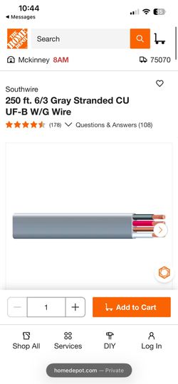 Southwire 250 ft. 6/3 Gray Stranded CU UF-B W/G Wire$950Mckinney, TX