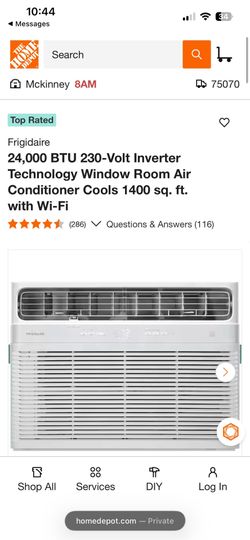 Frigidaire 24,000 BTU 230-Volt Inverter Technology Window Room Air Conditioner Cools 1400 sq. ft. with Wi-Fi$600Mckinney, TX