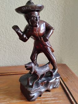 Vintage Chinese Wood Hand Carved Man and Dog Figurine Sculprure 9" Tall