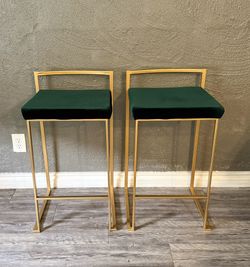 Modern Low Back Velvet Fuji Stacker Bar Stools Gold Dark Green Set of 2$125Phoenix, AZ