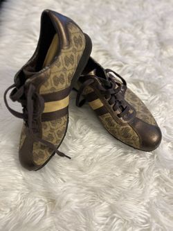 Guess Monogram Low-Top Sneakers in Brown and Tan size 9 Fabric Print and Logo$100Philadelphia, PA