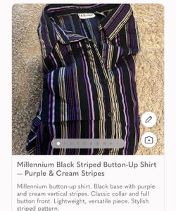 Millennium Black Striped Button-Up Shirt Purple & Stripes size 24 long sleeve$10Philadelphia, PA