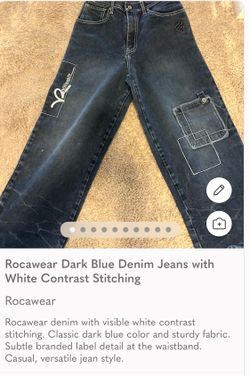 Rocawear Dark Blue Denim Jeans White Contrast Stitching sz 12 Boys Embroidery $25Philadelphia, PA