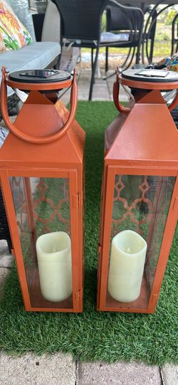 Pair of Tall 23β Orange Solar Candle Holders with Candles β Never Used $20 each$20Sebastian, FL