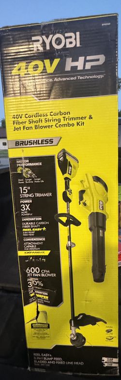 RYOBI 40V HP Brushless 600 CFM 155 MPH Cordless Leaf Blower and Carbon Fiber String Trimmer with 4.0 Ah Battery and Charger$240Mesquite, TX