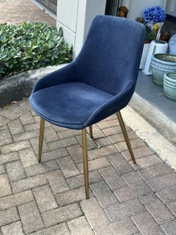 One Contemporary Blue Velvet, Gold, Medal Legs, Accent Chair Seat 20 X16 Height 18.5$45Pembroke Pines, FL