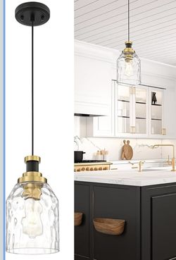 zeyu Large Pendant Lights Kitchen Island, Modern Hanging Lamp for Bedroom Living Room, Water Ripple Glass Shade, Black and Gold Finish, ZG33M1L-L BK+B$30Mentor, OH