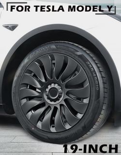 Tesla Model Y Wheel Cover Hubcap 19 Inch Matte Black Support Logo Symmetry Design (4 PCS) Uberturbine Style for 2020-2024 Model Y Gemini Wheel Cover R$110Mentor, OH