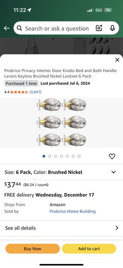 Probrico Privacy Interior Door Knobs Bed and Bath Handle Levers Keyless Brushed Nickel Lockset $20Brunswick, OH