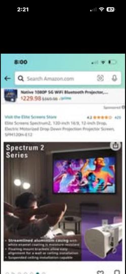 120” elite screens inc motorized projection screen still in box brand new$250Wittmann, AZ