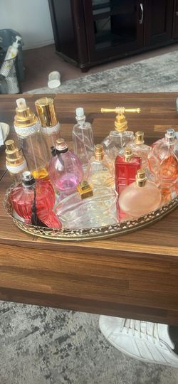 12 bottles of perfume and glass ornait perfume tray$75Bakersfield, CA