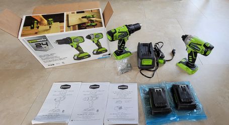 Greenworks 24V Lithium Drill Driver and Impact Driver Combo Kit GREAT CONDITION $125Wingate, NC