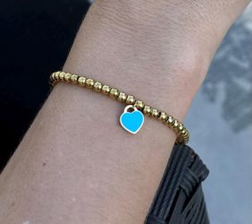 Gold beaded bracelet with blue heart charm 💙$15Miami, FL