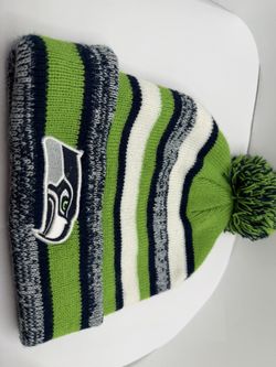 Seattle Seahawks Knit Beanie Hat Pom Pom Green Gray Striped Winter NFL$20Lynnwood, WA