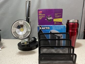 Desk lamp, pencil sharpener, 2-hole punch, 16-OZ Thermo, file organizer $75Lewisville, TX