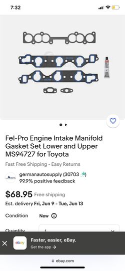 Felpro Manifold Gasket For Toyota 3.0 Engine $40Delano, CA