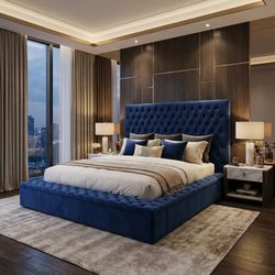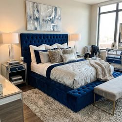 Blue Velvet Tufted Storage Bed- $2,900 original retail$699Corona, CA