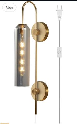 BOKT Mid-Century Modern Wall Lamp, Plug-in Golden Brass, 1 Smoke Gray Glass Wall Lamp for Interiors,$50Plainfield, IL