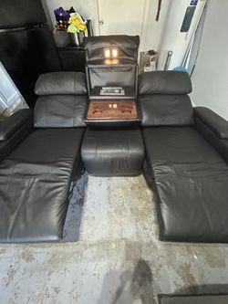 Beautiful Used Black Faux Leather Tech Upgraded Power Reclining Sofa Delivery Available 🚚$300Wesley Chapel, FL