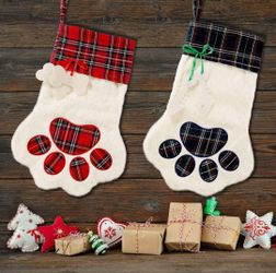 🆕️ 2 Pieces Christmas Pet Stockings Cat Dog Paw Pattern Buffalo plaid - Rd/Grn$15Chesapeake, VA