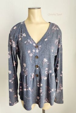 🆕️🏷 Como Vintage floral peasant top - Blue/Gray wit pink floral pattern - L$20Chesapeake, VA