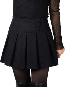 🆕️🏷chouyatou Casual Plaid High Waist A-Line Wool Pleated Short Skirt -Black -M$25Chesapeake, VA