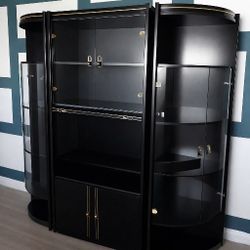 Black Lacquer Lighted Wall Unit w Curved Glass Ends Dry Bar 73x78x18 PICKUP ONLY Peoria, AZ$650Peoria, AZ
