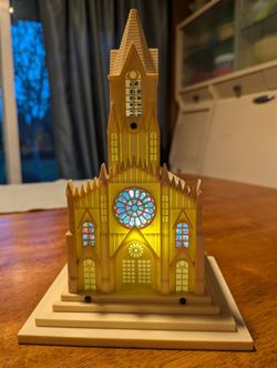Vintage Hard Plastic Christmas Church, Retro WORKING Raylite Electric Corp Illuminated Musical Church, Retro Lighted Christmas Church